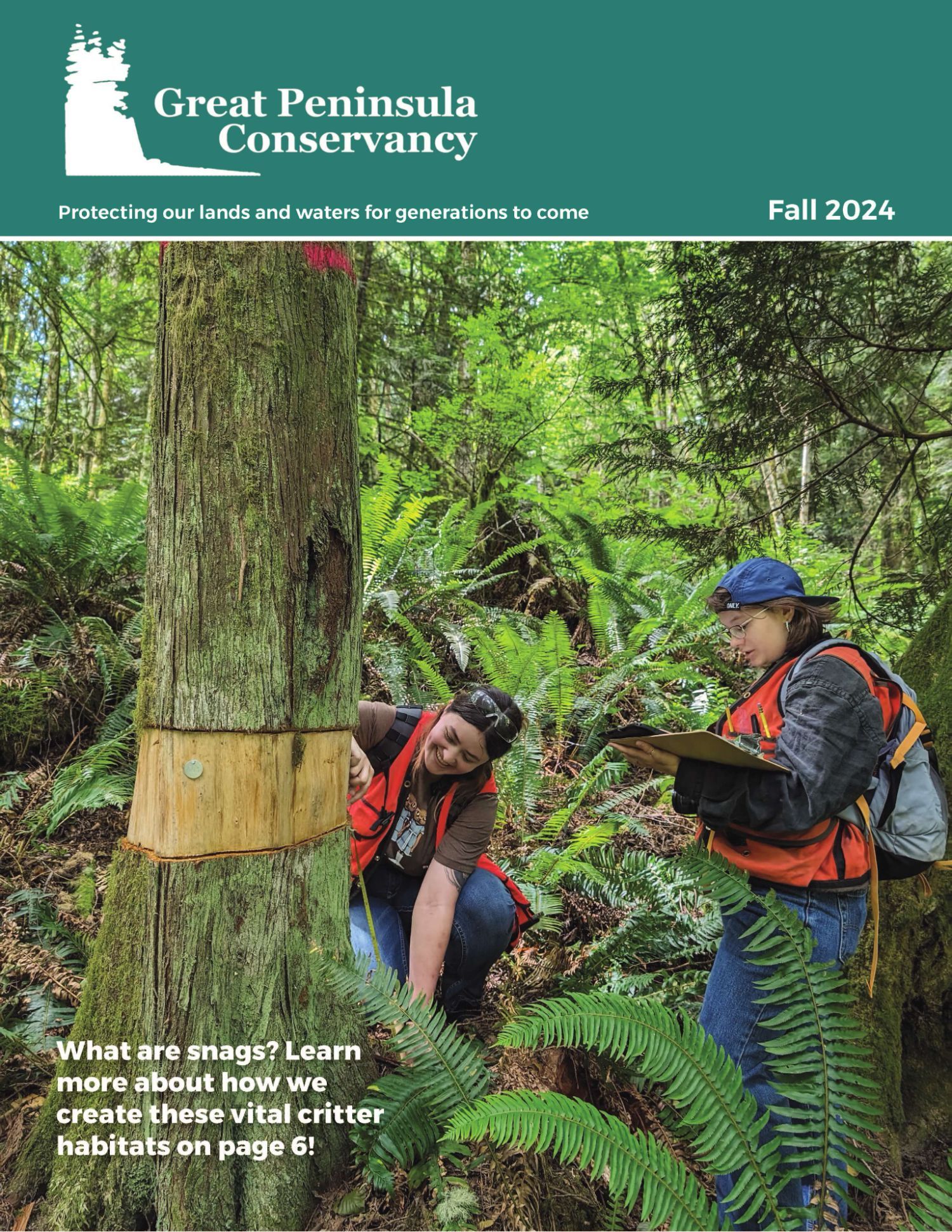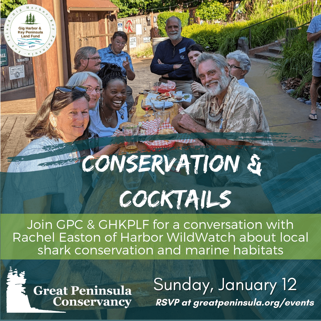 | | | | | | Hello Friend, Let me be the first to wish you a happy and healthy New Year! The holidays are a time for reflection, and I’m thankful to have joined GPC, where I’ve found a community committed to preserving our region’s wild places. I’m inspired every day by what we've accomplished together. I want to take a moment to reflect on the incredible milestones achieved in 2024 with your support: 🌲 This week, GPC realized a shared dream 20 years in the making – the successful acquisition of the 467-acre Divide Community Forest! 🎉 Last month, over 250 supporters came together to help us reach our $60,000 year-end goal. With the added power of matching gifts, you made it possible to raise over $120,000! Your generosity ensures GPC can continue our vital work – thank you. 🌍 621 acres of land and four stream systems were protected in 2024, and thousands of native plants were restored to the landscape. 🧑🎓 2,800+ students were introduced to nature last year through our free environmental education program, Land Labs. Looking ahead, 2025 promises to be even more exciting as we celebrate Great Peninsula Conservancy’s 25th anniversary! We can’t wait to share more stories, events, and ways for you to get involved in the coming year. Yours in gratitude, | | | | | | | | | | Historic Acquisition: The 467-acre Divide Community Forest Saved | | | | We are thrilled to announce the acquisition of the 467-acre Divide Community Forest, a strategic land conservation project in north Kitsap County that preserves critical wildlife habitat and supports planned regional trail connectivity. Now permanently protected, the land will offer a significant conservation and recreational resource. The protection of the Divide Community Forest represents a pivotal moment for Great Peninsula Conservancy. In our 25-year history, this is the single largest land acquisition we've undertaken, marking a significant milestone in our organizational journey and a huge leap forward for regional conservation. By protecting these 467 acres, we're preserving critical wildlife habitat, creating a lasting legacy, and demonstrating the power of collaborative conservation. Visit our blog to read more about this monumental acquisition. | | | | | | | | Fall Newsletter Showcases GPC's Impact | | Our fall newsletter is here! Dive into stories about our conservation efforts, including the preservation of Key Peninsula’s newest wildlife corridor, the inspiring legacy of Janice Pittman, and the transformative power of our Land Labs education program. Plus, learn how University of Washington students are helping GPC staff assess forest health and climate resiliency through cutting-edge research. Visit our website to read the full newsletter. | | | | | | | | Community Learning in Forest Conservation | | | | This fall, GPC and Jefferson Land Trust (JLT) partnered to host two transformative ecological forestry workshops, guided by Jaal Mann, lead forester at Northwest Natural Resource Group. At JLT’s Valley View Forest and our own Grovers Creek Preserve, more than 60 participants gathered for four-hour explorations of forest stewardship in action. The diverse group of participants included conservation professionals from neighboring land trusts and county agencies, restoration practitioners, current and prospective forest landowners, and even a GPC conservation easement holder, all coming together to learn about ecological forestry practices. Visit our blog to read more about the workshops. | | | | | | | | Tahuya Preserve featured in Latest Edition of Groundswell | | GPC is honored to be featured in the 2024 edition of Groundswell, the Washington Association of Land Trusts' annual publication celebrating private land conservation across the state. This edition highlights the collective efforts of land trusts across Washington State to protect vital landscapes and connect communities to nature. Explore the inspiring stories of land trusts making a difference, including GPC’s work on the Tahuya River Preserve. Visit our blog to learn more about Groundswell and read the latest edition. | | | | | | | | Cheers to Our Amazing Volunteer Land Stewards! | |  | GPC’s Stewardship program wouldn’t be what it is without our incredible Volunteer Land Stewards (VoLS)! In 2024, we trained 17 new volunteers during two training sessions, bringing our team of VoLS to 44. Together, they completed over 100 hours of annual monitoring across 42 protected properties in 2024. On top of that, they rolled up their sleeves for stewardship work like baseline documentation, invasive species removal, and seedling maintenance. With 63 conservation easements and 70 fee land preserves to care for – spanning 3,679 acres – our team of three stewardship staff couldn’t do it without volunteer support. We’re so grateful for the time, energy, and passion our VoLS bring to protecting these special places. Here’s to another great year of learning, connecting, and caring for the lands we love. Please join us in giving a huge THANK YOU to our Volunteer Land Stewards! | | | | | | | | Conservation and Cocktails Join us on Sunday, January 12th at 4:00pm for Conservation & Cocktails, our quarterly series bringing together nature enthusiasts and conservation experts. This month, Harbor WildWatch's Rachel Easton leads us on an exploration of local shark conservation and marine habitats. Connect with GPC staff, Gig Harbor & Key Peninsula Land Fund members, and neighbors who share your passion for nature. When: Sunday, January 12th, from 4:00pm-5:00pm Where: The Beer Vault, 14004 Purdy Dr NW, Gig Harbor, WA 98332 | | | | | | Walk and Talk: Tribal Lands Conservation This month's Walk and Talk is an exploration of collaboration and conservation with the Port Gamble S'Klallam Tribe. Join GPC staff and members of the Port Gamble S'Klallam tribe on Saturday, January 18th at 10:00am. Tribal members will lead us on a guided walk to Point Julia to explo