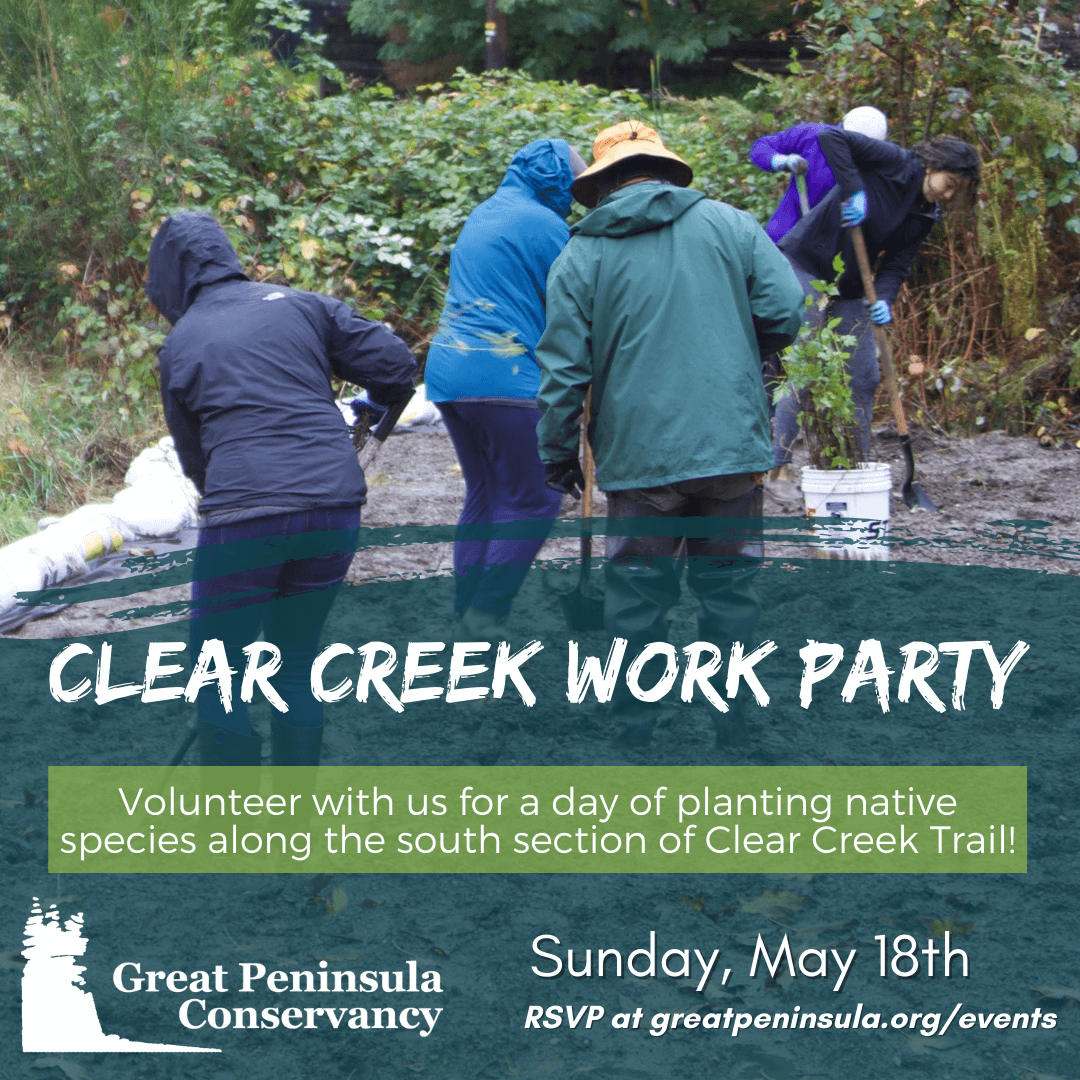 | | | | | | Hi Friend, May has arrived in full bloom - lilacs perfume my garden, goldfinches sing at my backyard feeders, and delicate fringecup pokes up along the forested paths of our preserves. These seasonal rhythms remind me why our conservation work matters so deeply. This month brings wonderful opportunities to connect with our community and support local conservation. Today marks the kickoff of GiveBIG, where your generous contribution helps protect the natural heritage of the West Sound region as we celebrate 25 years of conservation success. I'm particularly thrilled about our upcoming Ribbon Cutting at The Divide Community Forest on May 17th - a chance to celebrate this remarkable 467-acre forest and explore its trails together. And don't forget to secure your tickets for our Conservation Celebration on June 5th at Kiana Lodge! This annual fundraiser features oysters and drinks on the lawn, inspiring stories of our shared successes, and a vision for the next 25 years of preservation work in our beautiful region. Whether you join us for a volunteer work party along Clear Creek Trail, attend a planning meeting for The Divide, or simply enjoy time in your garden watching spring unfold, I hope you find joy in this season of renewal. Here's to getting outside, | | | | | | | | | |  | GiveBIG is HERE! Support 25 Years of Local Conservation! Today is the official GiveBIG campaign kickoff with Washington Gives, and we need your help to protect our precious local landscapes! For 25 years, Great Peninsula Conservancy has been safeguarding the natural heritage of the West Sound region - from the rocky shores of McDermott Point to Grovers Creek Preserve's towering old-growth trees. Every acre we protect together creates habitat for wildlife, clean water for our communities, and outdoor spaces for everyone to enjoy. Your donation today helps us continue this vital work across Kitsap, north Mason, and west Pierce counties. Make your impact during GiveBIGWA and be part of our next 25 years of conservation success! | | | | | | | | Last Call: Get your 2025 Conservation Celebration Tickets | |  | Presented by Puget Sound to Pacific, join us for this year's Conservation Celebration event. We’re excited to celebrate 25 years of conservation in West Puget Sound at our annual fundraiser on June 5th, 5:30pm - 9:00pm! Join us at the beautiful Kiana Lodge for oysters and drinks on the lawn, dinner in the lodge, and stories of GPC’s recent shared successes. We’ll have a slate of speakers and a live auction and paddle raise to support our work for the next 25 years and beyond! Your ticket purchase ($180) will include dinner, a drink ticket, and entry to the event. Become a Table Captain ($1,600) and reserve a table, dinner, and wine for eight guests. Learn more about this year's program on our website, or click here to get your ticket now! Be sure to RSVP by May 15! | | | | | | | | Incredible BioBlitz Results: 3,768 Species Identified Across Kitsap! | | | | The results are in! With the help of nearly 200 dedicated volunteers, GPC joined forces with Bainbridge Island Land Trust, Kitsap County Parks, Poulsbo Parks, Bloedel Reserve, IslandWood, Kitsap Audubon Society, and WSU Extension to document an astounding 3,768 organisms throughout Kitsap County during this year's City Nature Challenge. This worldwide citizen science initiative, powered by the iNaturalist app, brought together nature enthusiasts across the globe to collect vital data on plants, animals, and fungi. While technically a friendly competition between regions, the true value lies in cataloging biodiversity and tracking species population trends over time. GPC led volunteer teams throughout the Carpenter Creek Watershed on Saturday, followed by engaging Poulsbo Middle School and North Kitsap High School students on Monday. Their sharp eyes and enthusiasm contributed significantly to our impressive results. Check out the City Nature Challenge Overview to explore all the fascinating observations made during this community science event! | | | | | | | | Building a Shared Vision for the Divide Community Forest through our Community Meeting Series | |  | Our second planning meeting for the Divide Community Forest built on the strong foundation established during our first gathering. Community members and GPC staff met at the Village Green Community Center in Kingston, WA to take the next steps in shaping our shared vision for this special place. During Planning Meeting #2, community members reviewed the comprehensive list of objectives and community benefits that were brainstormed during our initial meeting. Together, we worked to prioritize these objectives, first organizing them within GPC’s three core pillars: Conservation, Stewardship, and Public Engagement. Visit our blog to learn more. | | | | | | | | Join GPC's Clear Creek Trail Team Help care for this vital community resource | |  | We're so thankful for the many wonderful Clear Creek Trail Team volunteers! The March wind storm damaged the boardwalk at Clear Creek Trail, but our amazing team quickly restored it to tip-top shape. Volunteering with the Clear Creek Trail Team is a lovely way to get some fresh air and meet new two-legged (and four-legged) friends. It's also a rewarding way to improve the quality of life for the thousands of people who use the trail. If you're interested in taking part in volunteer efforts with Clear Creek Trail, send an email to volunteer@greatpeninsula.org. | | | | | | | | Divide Community Forest Planning Meeting #3 Join us to shape the future of the Divide Community Forest! This three-part meeting series will focus on the recently established Divide Community Forest and the ways in which the community (you!) can engage with the forest. Join us to determine how this new community forest can best benefit the people and wildlife of our region. When: Tuesday, May 6th, 4:30pm - 6:30pm Where: Village Green Community Center, Kingston | | | | | | | | Divide