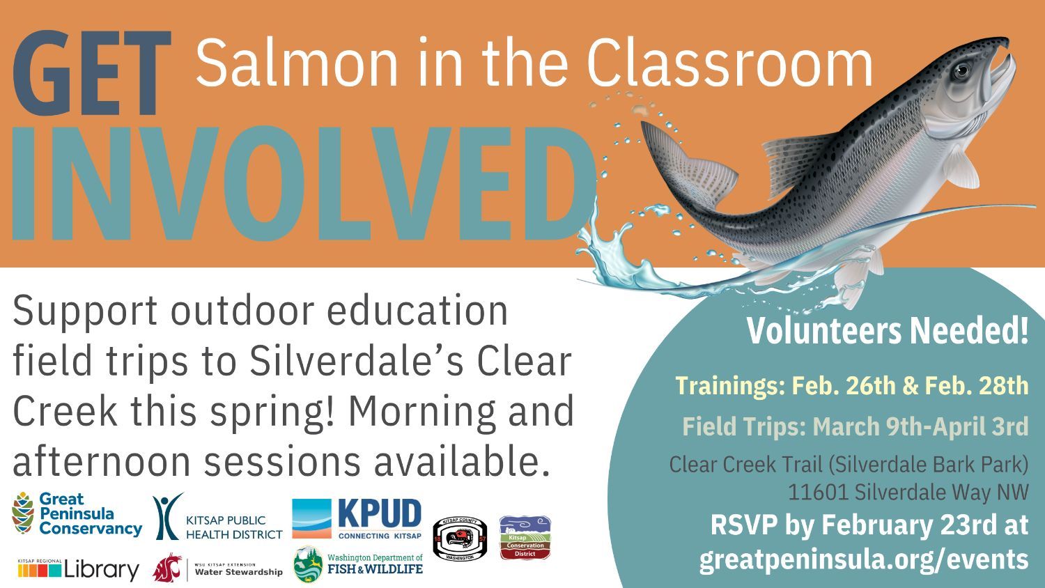 | | | | Hi Friend, February's here, and it's been strangely dry for this time of year—almost like the landscape is holding its breath before spring arrives. But we're not waiting. This month, we're planting 16,465 trees and shrubs across five preserves in our most ambitious restoration season yet. We need your help. Our February 28th work party at Gass Preserve is a rare chance to restore salmon habitat along Hood Canal—planting native species that will support chum and Chinook recovery for decades to come. Whether you've planted a thousand trees or this is your first time, there's a spot for you. The days are getting longer, the buds on the Gary oak in my yard are swelling, and spring is just around the corner. Let's make the most of these final winter weeks and get some trees in the ground together. Here's to getting outside, | | | | | | | | 2026 Winter Tree Planting: 16,465 Trees Across Five Preserves | | | | This winter, we're undertaking our most ambitious planting season yet! This January and February, our Stewardship team is working alongside volunteers and conservation crews to plant 16,465 native trees and shrubs across five GPC preserves—more than triple last year's efforts. This massive undertaking represents not just a commitment to forest diversity and reforestation but a scientific approach to building climate-resilient forests that can thrive for generations to come. Visit our website to learn about the five major restoration projects we're tackling this year, and learn about ways you can join us to plant a tree or two. | | | | | | | | 🌲 Bring People Together for Conservation 🌲 | |  | We’re inviting Sponsors and Table Captains to help connect friends, neighbors, and partners at our Conservation Celebration fundraiser on June 4. Host a table, share an evening with people who care about this place, and support the forests, farms, and trails we all love. Reach out to Development Manager Katherine Tacke to reserve a table for eight ($1,800) or explore sponsorships (in-kind or levels from $1,000–$25,000) at katherine@greatpeninsula.org or 360-373-3500 x107 | | | | | | Save the Date: Kitsap Great Give | March 10 | | | | Next month, support GPC on this countywide day of giving—from preserving community forests to restoring Hood Canal shoreline to implementing Salmon in the Classroom. Early giving begins March 1 at kitsapgreatgive.org/organization/gpc | | | | | | Protect What You Love for Generations | | | | You can support GPC’s mission long into the future with a planned gift in your will. It’s simple, flexible, and makes a lasting difference. GPC's Legacy Society honors individuals who make a commitment to protect the lands and waters of the Great Peninsula through a gift in their will, trust, or retirement plan. Members are recognized during their lifetime—when they inform us of their plans—and celebrated in the years that follow as lasting champions of conservation. Board member Mike Hall and his wife Becky are hosting a Legacy Society challenge—each new Legacy commitment activates a $1,000 gift in your honor, helping protect the lands you love forever. Six of 25 Legacy Challenge spots are already committed! Visit our website to learn more. | | | | | | | | Call for Volunteers: Salmon in the Classroom | |  | Each spring, elementary students in classrooms all around Kitsap County take part in Salmon in the Classroom and learn all about salmon by tending salmon eggs in their classroom tanks. As the baby salmon grow from egg to alevin to fry, students explore the salmon life cycle, their habitat, and the impacts of human activity. The learning experience culminates with field trips to Clear Creek in Silverdale in March and April. There, students learn about habitat requirements, test water quality, and discover the many kinds of stream bugs that live in local streams. During the trip, each student has the opportunity to name a salmon fry and release it into the creek, where it will start its journey downstream. We’re seeking volunteers who want to be part of this life-changing field trip! Salmon in the Classroom volunteers are trained on each of the four stations that students rotate through, and will assist in leading the educational program. This is an opportunity to help students build a lifelong relationship with nature. Volunteers will be trained in outdoor education techniques that meet BEETLES and Next Generation Science Standards. No experience necessary! There are three volunteer training sessions. Choose the one that best fits your schedule: - February 26th, 10:00 am – 12:00 pm